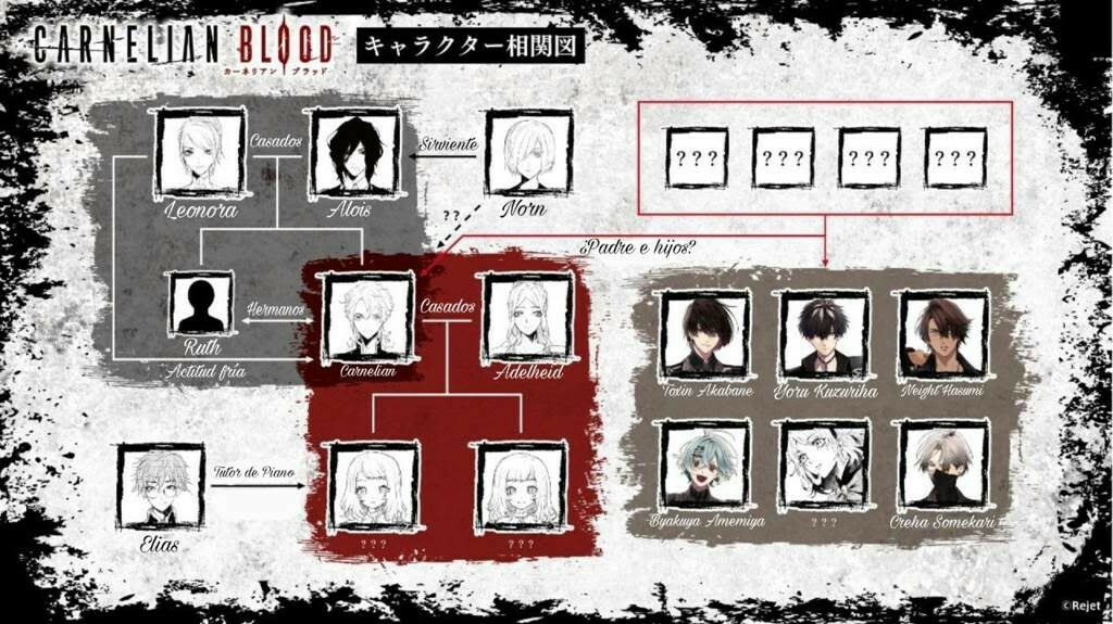 در سی دی درامای Carnelian Blood به معنای واقعی از نام بنیان گذاران و First blood یا خون اول نام برده شده...و تو همین سی دی دراما گفته شده یک بیماری تموم خاندان اونارو کشته و به عمارت banmaden یا pandemonium هم اشاره میکنن یا اونجا زندگی میکنن