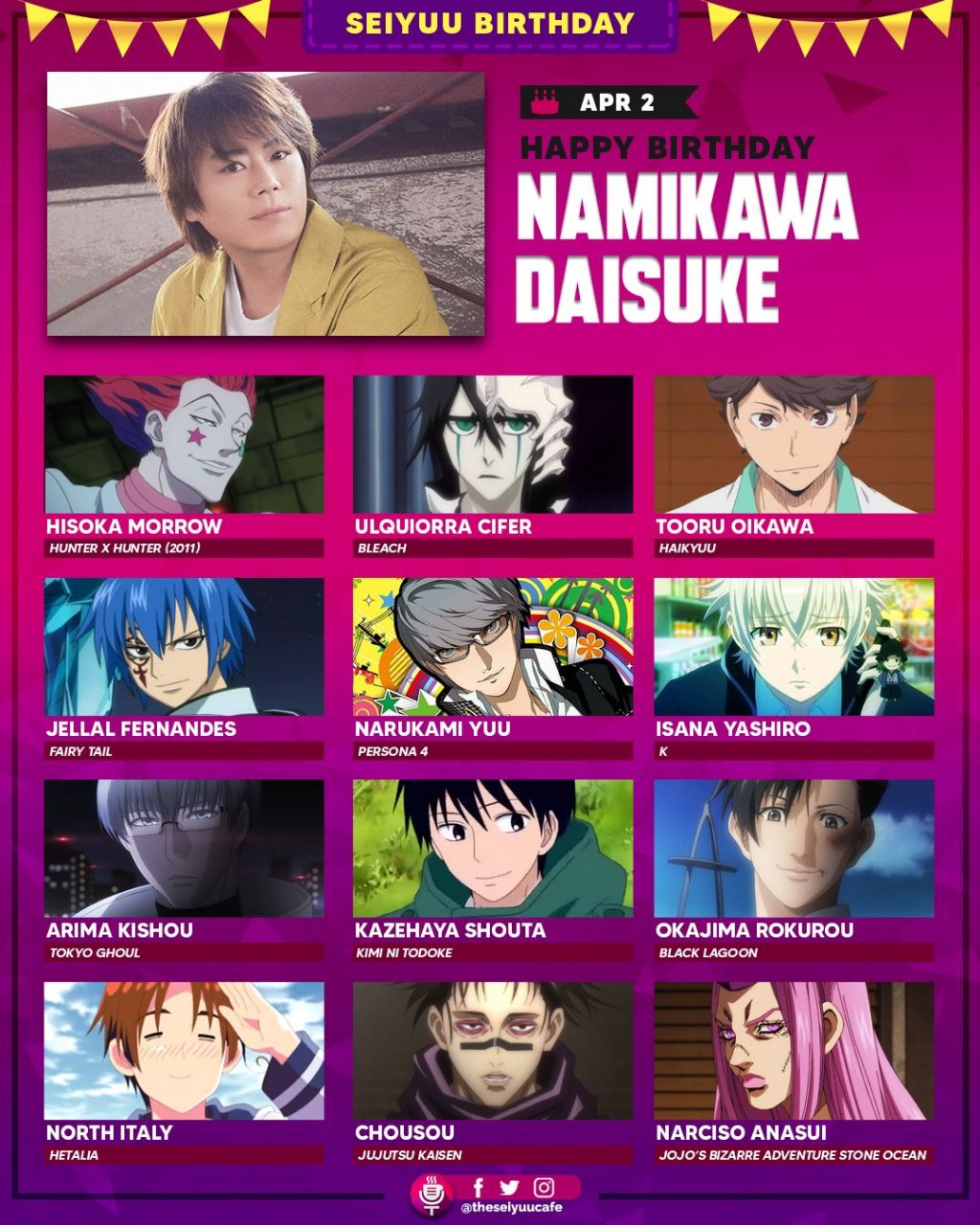 امروز تولد نامیکاوا دایسوکه صدا پیشه شخصیتهای بالا هست.