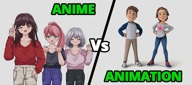 در انیمیشنها، سازندگان روی شخصیتها و حرکات آنها متمرکز هستند ولی در انیمه، تمرکز اصلی عمدتا روی کاراکترها، پس زمینه و محیط دراماتیک است و همین نیز سبب شده تا تفاوت متمایزی بین آنها در جزئیات وجود داشته باشد.