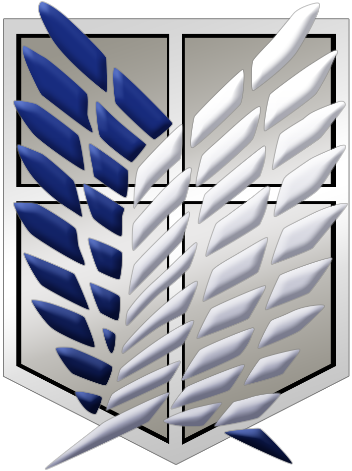 در کل لوگو از دو بال تشکیل شده بال سفید تقریبا بیشتر بال آبی (مشکی) رو پوشونده و بخش زیادی از لوگو رو تشکیل میده ، در واقع این بال سفید نماد بشریت هست و بال آبی نماد تایتان هاست!
