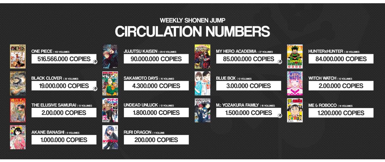 45. نگاهی به مجموع فروش آثار فعلی مجلهٔ *Weekly Shonen Jump* در آغاز سال 2024.