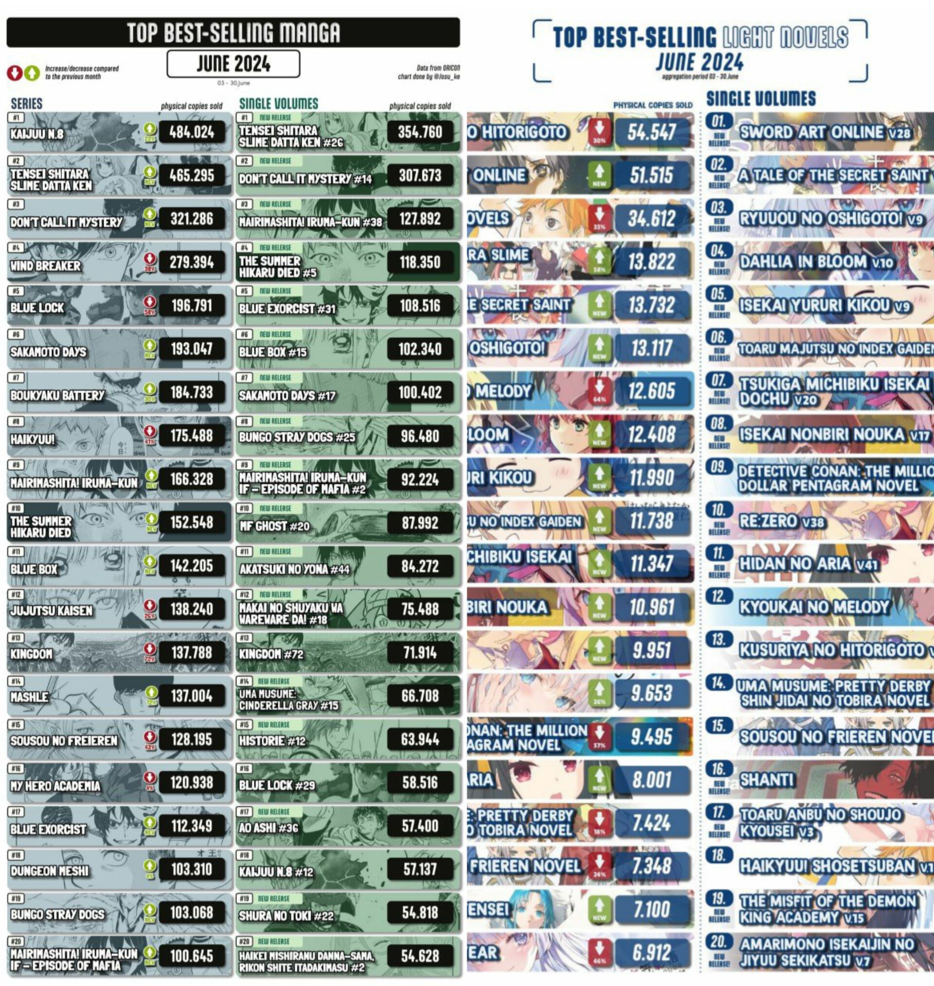 62. پرفروشترین مانگاها و لایت ناولهای ماه ژوئن در کشور ژاپن (تک جلد و کل سری).