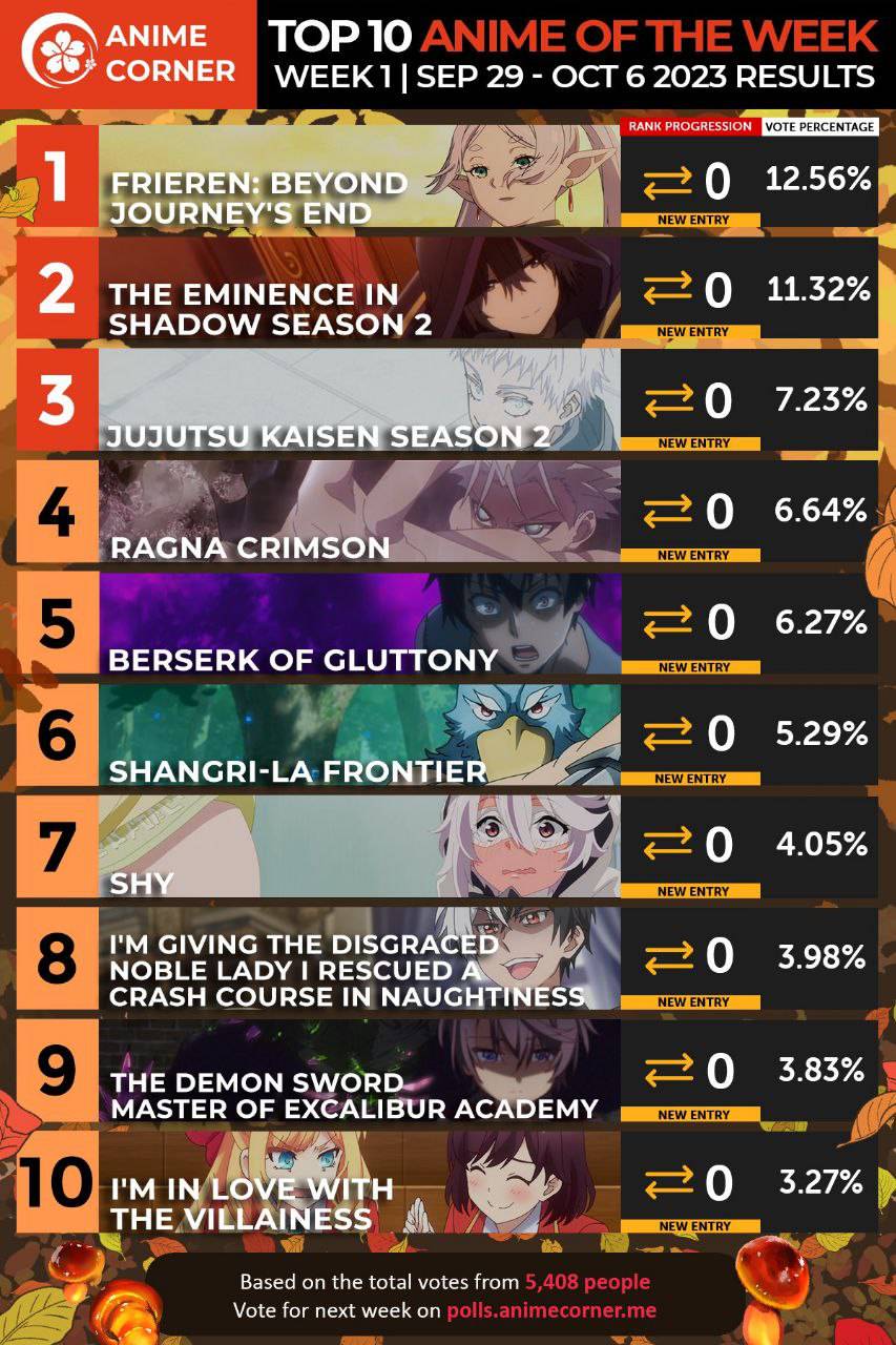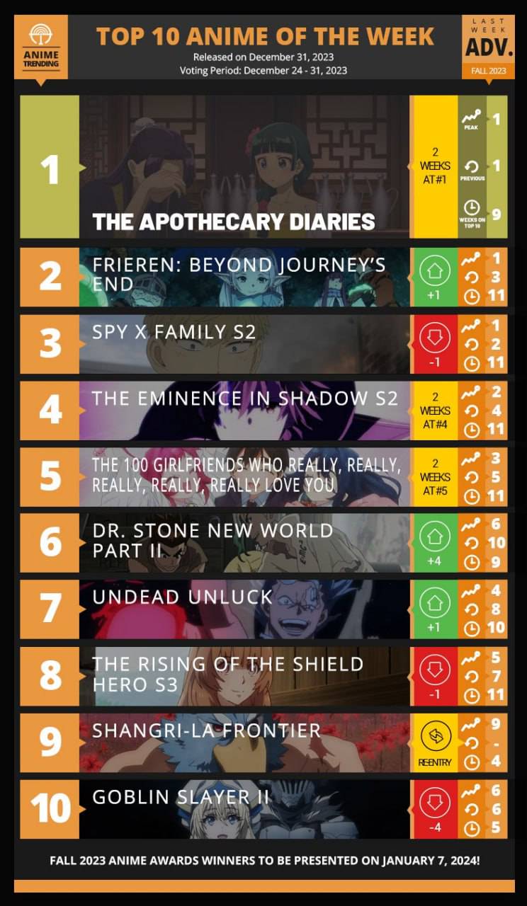 31.بهترین انیمههای هفتۀ یازدهم فصل پاییز ۲۰۲۳ به انتخاب کاربران سایت *Anitrendz*