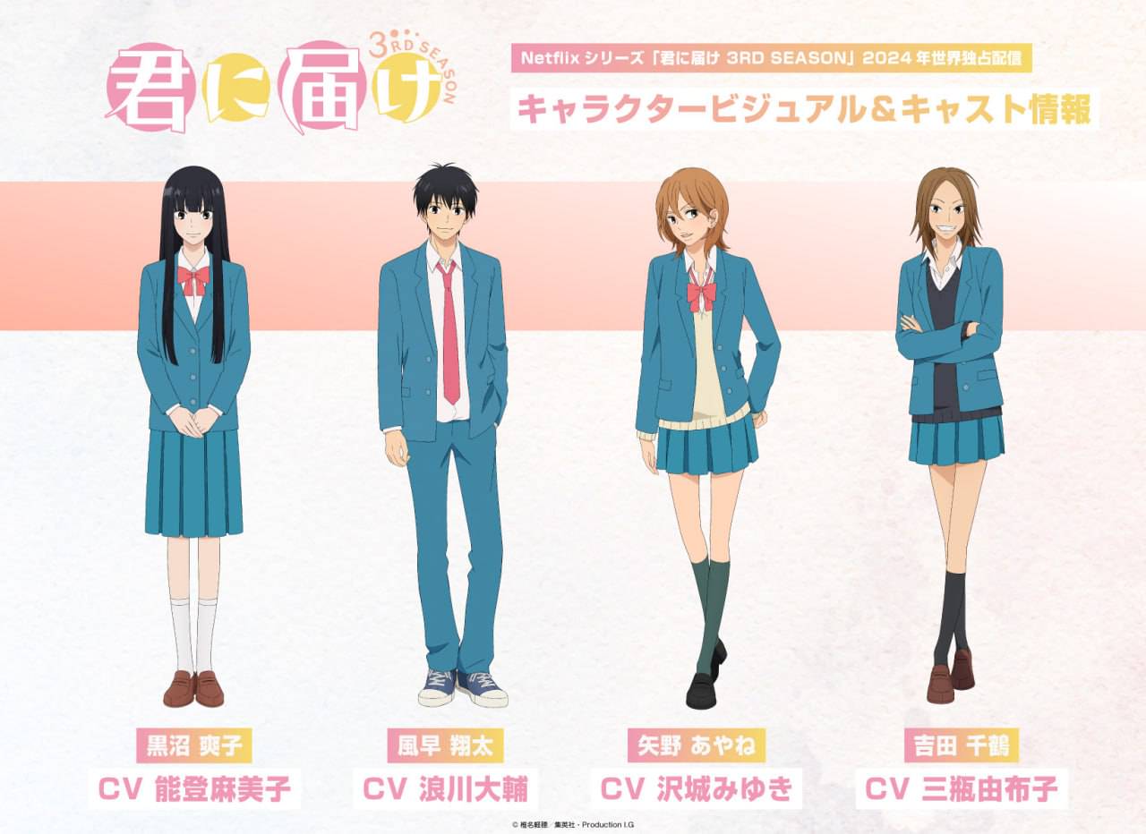 34. شخصیتها و صداپیشههای اصلی فصل سوم انیمهٔ *Kimi ni Todoke*: